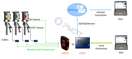 The PMDTiSmart HDCU obtains detection data from smart sensors wirelessly and uploads to the PMDTCloud.